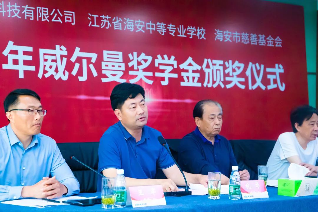 “威尔曼奖学金”由江苏威尔曼科技有限公司捐赠50万元在海安市慈善总会(基金会)设立,每学年出资用于奖励海安中专品学兼优、技能突出的学生,激励学生成长成才,是推动职业教育的一项社会公益举措。