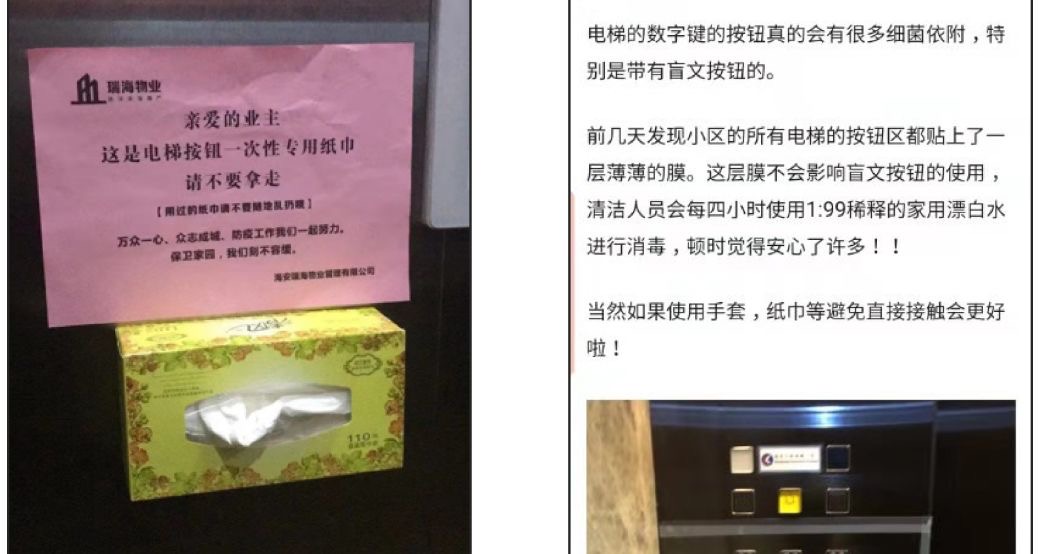 各式新型冠状病毒的传播方式,让电梯成为了高危空间。为了减少电梯的感染风险,网友们想出了一系列的解决方法: