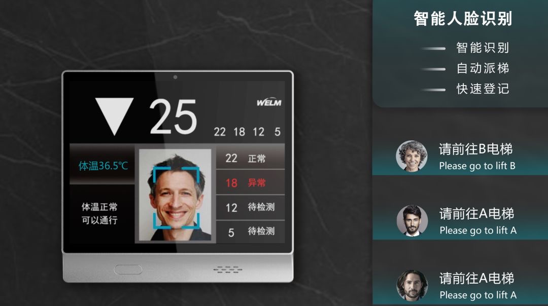 ▪ 自动人脸识别,自动派梯,目标楼层智能登记