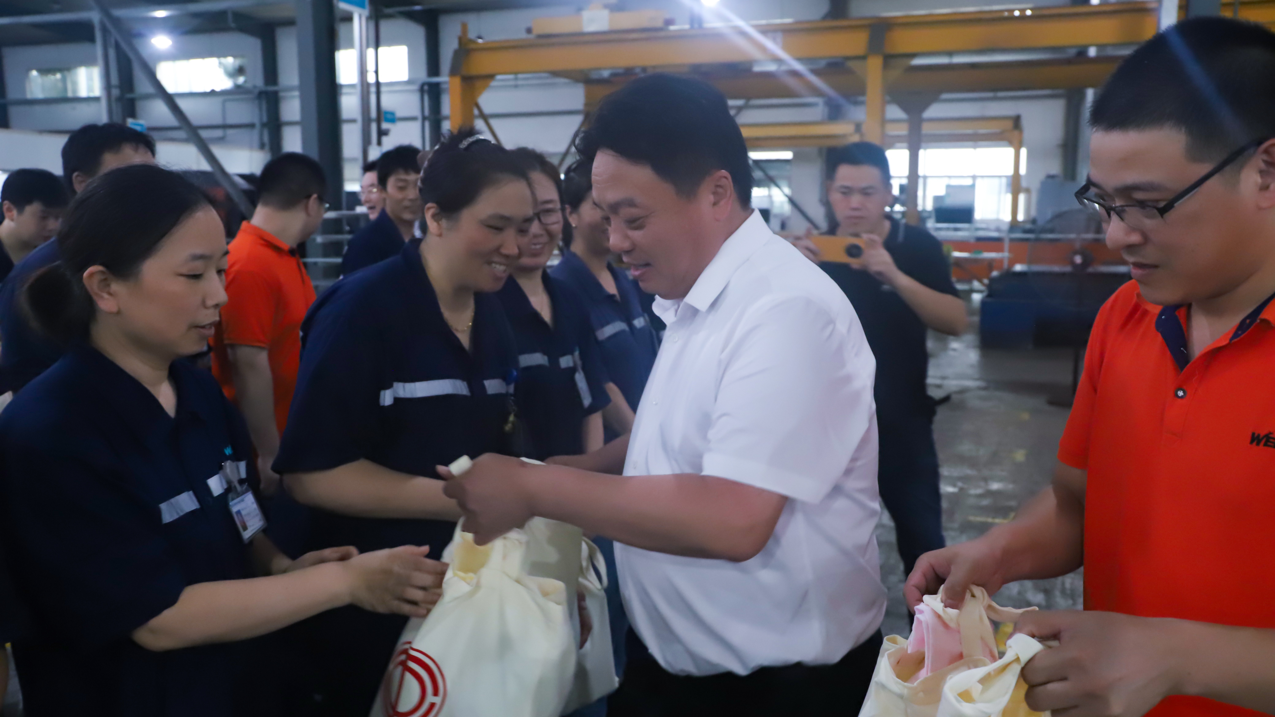 7月27日,市委书记于立忠带队莅临威尔曼开展夏季慰问活动,为奋战在一线的劳动者送去防暑降温物品,并通过他们向全市广大一线职工表示崇高敬意和由衷感谢。